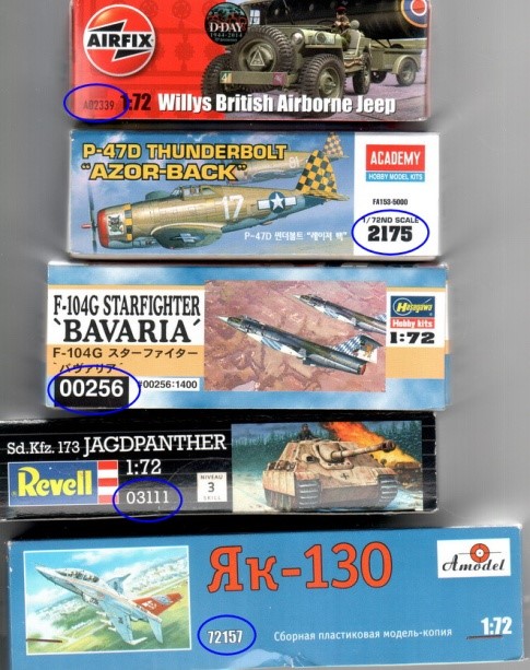 Οποιαδήποτε προεγγραφή ληφθεί μετά από αυτή την ώρα δεν θα γίνει δεκτή. - Είναι υποχρεωτική η συμπλήρωση όλων των στοιχείων. Στην στήλη Κωδικός εταιρείας συμπληρώνετε (προαιρετικά) τον κωδικό εταιρείας του προς πώληση μοντέλου. Ο κωδικός αυτός αναγράφεται πάνω στη συσκευασία του μοντέλου (πχ στη παρακάτω εικόνα για το Airfix είναι Α02339, για το Academy 2175, για το F-104G 00256, για το Revell 03111 και για το AModel 72157).