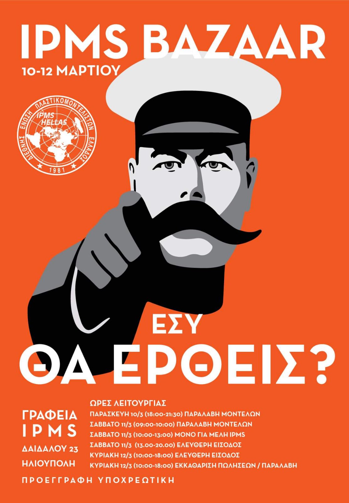 Το ετήσιο παζάρι μοντέλων (kit swap) της IPMS Ελλάδος θα πραγματοποιηθεί στις 10, 11 & 12 Μαρτίου  2023 (10-12/3/2023) στα γραφεία της IPMS στην Ηλιούπολη, Δαιδάλου 23, 163 41, (πλησίον Ι.Ν. Αγ. Παρασκευής).